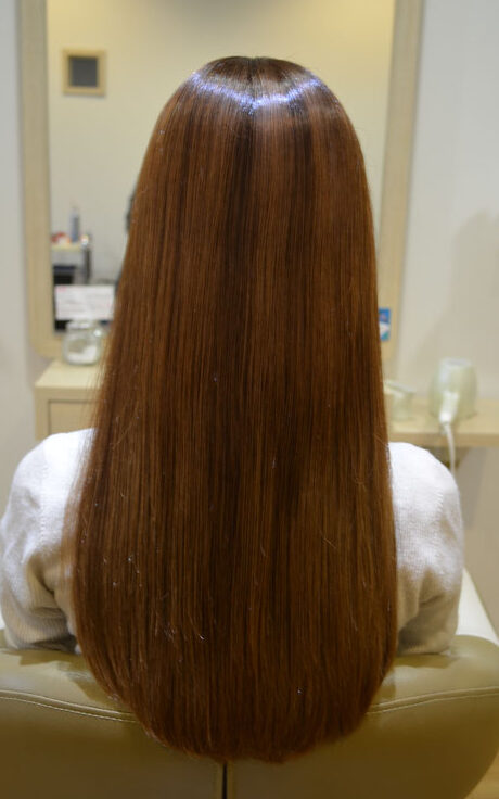 髪の細部までグリオキシル酸という成分を入れ込み、
